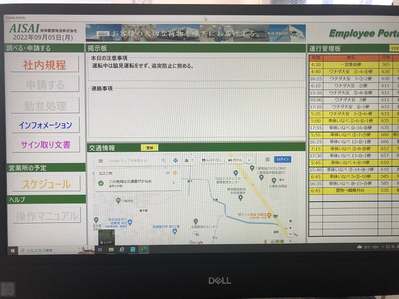 弊社は運輸業と貸倉庫業を営んでおり、弥富インターから1kmとアクセスもよく、事務所はお客様に貸し出ている倉庫棟と同じ敷地内にあります。運行便は基本的にトヨタカレンダーに準じた定期便で残業もほとんどないのでプライベートの計画も立て易いです。地場便なので1日の走行距離も100km以下と短く、積み降ろしは全てフォークリフト作業なので力も要らず、女性ドライバーも活躍中です。
