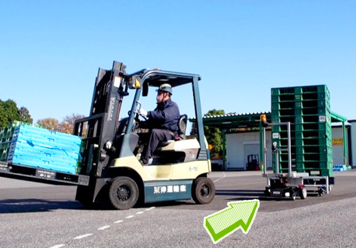 作業者の後ろを自動追従する「サウザー」という協働運搬ロボットを導入。作業効率を高め、繁忙期の入出荷に対応しています。